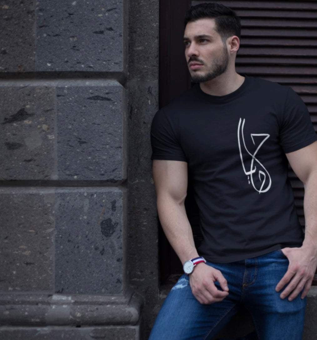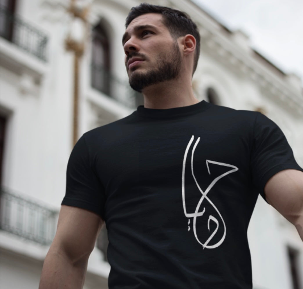 minimalist in style, powerful in message — this unisex tee features original Arabic calligraphy spelling “حياه” (Hayah, meaning “Life”) in a bold, abstract stroke. Designed for those who carry their inner world with quiet confidence and deep meaning.